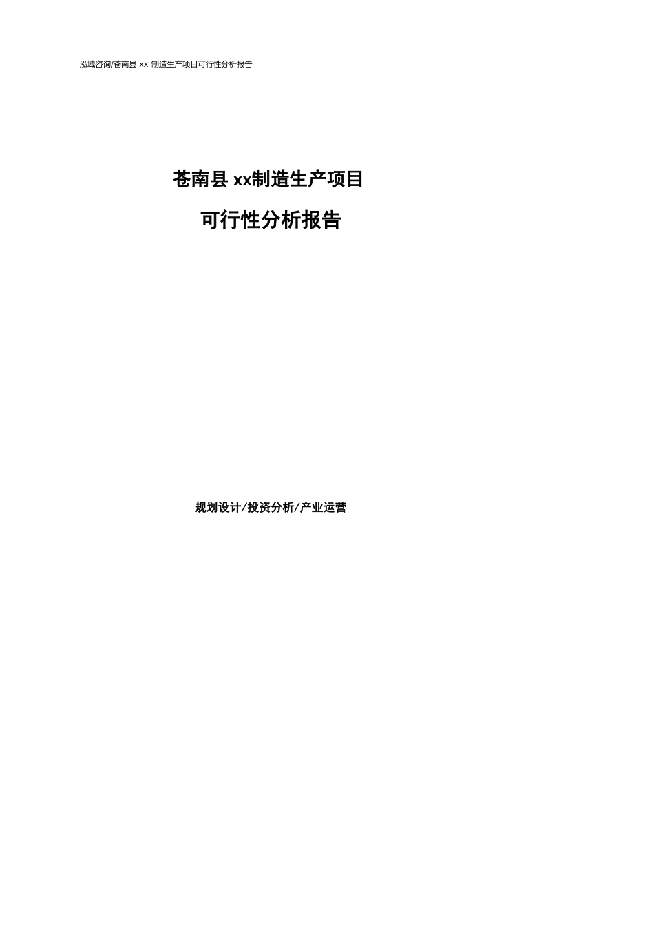 泓域咨询/苍南县xx制造生产项目可行性分析报告苍南县xx制造生产项目可行性分析报告规划设计/投资分析/产业运营泓域咨询/苍南县xx制造生产项...