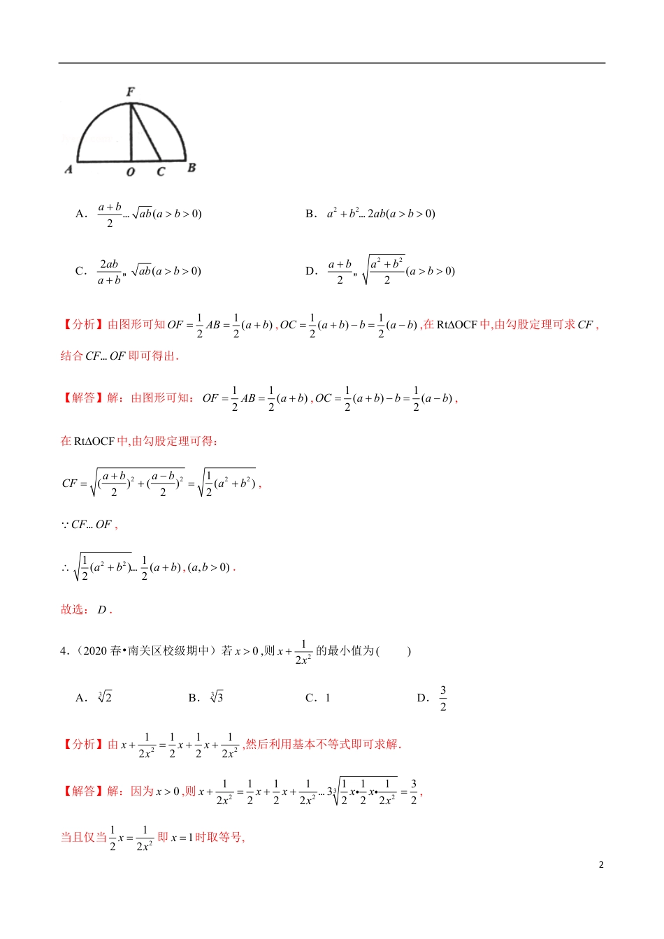 2.2基本不等式A组-[应知应会]1.(2020春•揭阳月考)已知正数、满足,则的最大值为ab236abab()A.B.C.D.19141312【分析】直接利用基...