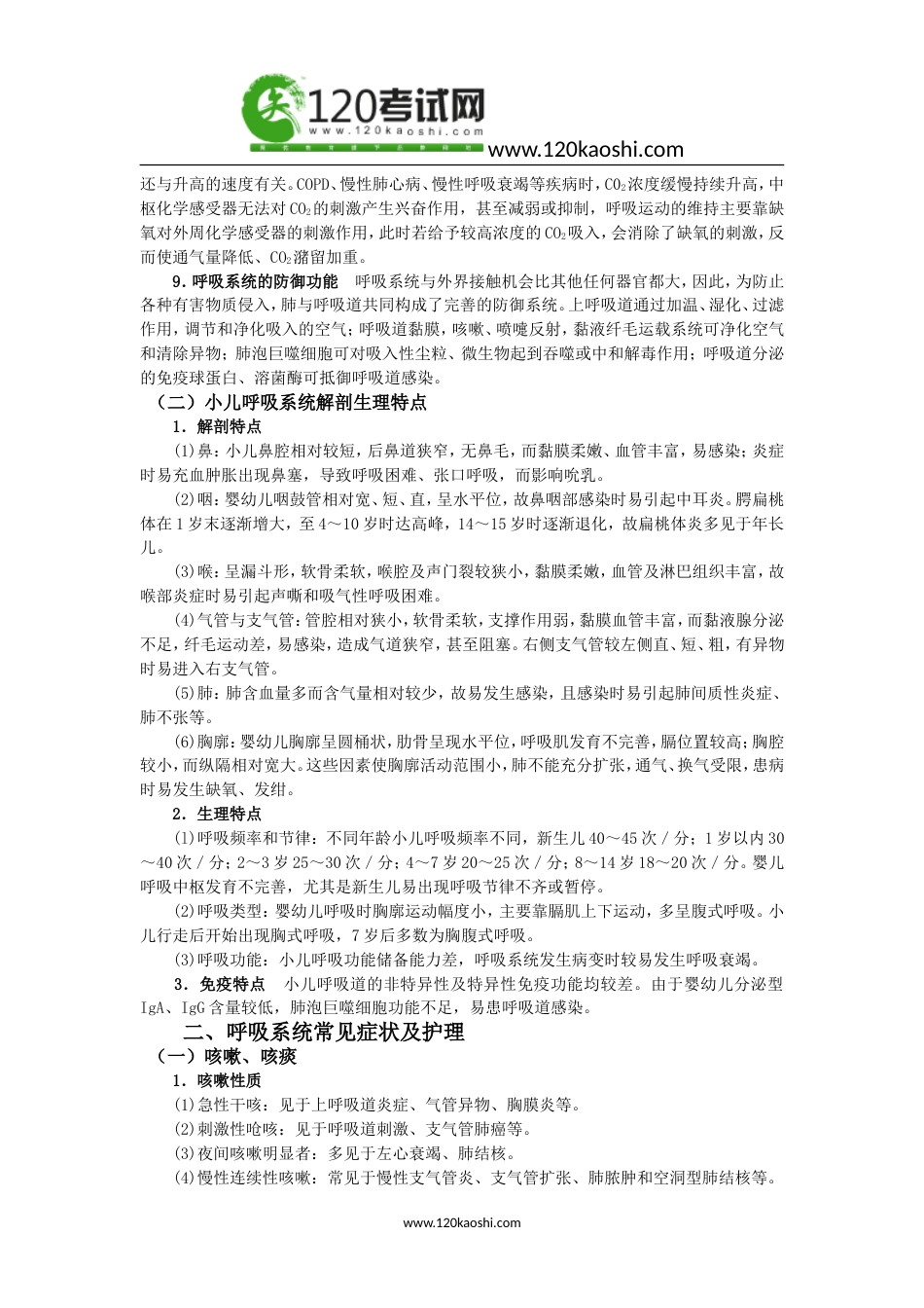 www.120kaoshi.com目录第4章呼吸系统疾病病人的护理..............................................164一、呼吸系统的解剖生理..............