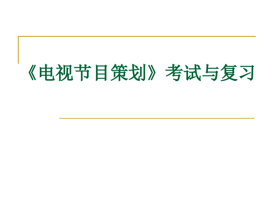 《电视节目策划》考试与复习关于考试1、闭卷考试,120分钟2、题型:选择、判断、简答、分析论述、节目策划复习内容一、电视策划...