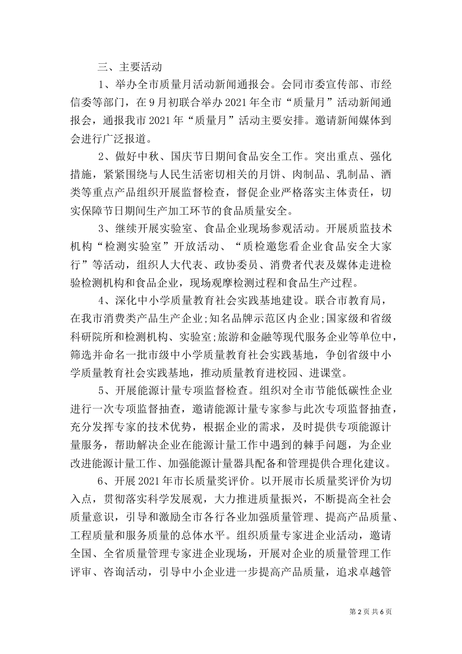 第1页共6页书山有路勤为径,学海无涯苦作舟。医疗质量月活动实施方案为深入贯彻落实科学发展观,实施国务院《质量发展纲要(2021-2021年)...