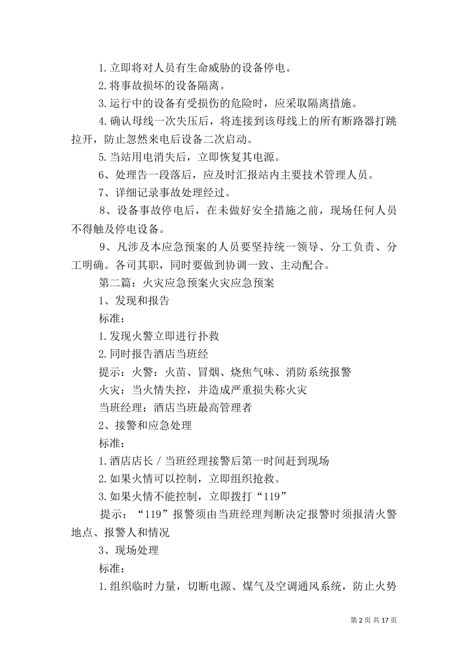 第1页共17页书山有路勤为径,学海无涯苦作舟。变电站火灾应急预案变电站安全事故应急预案适用范围:本预案适用于35kv、10kv供电系统中的重...