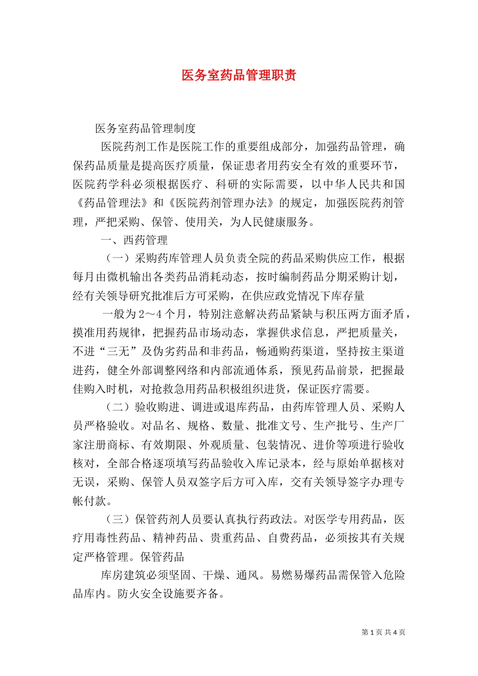 第1页共4页书山有路勤为径,学海无涯苦作舟。医务室药品管理职责医务室药品管理制度医院药剂工作是医院工作的重要组成部分,加强药品管理,...