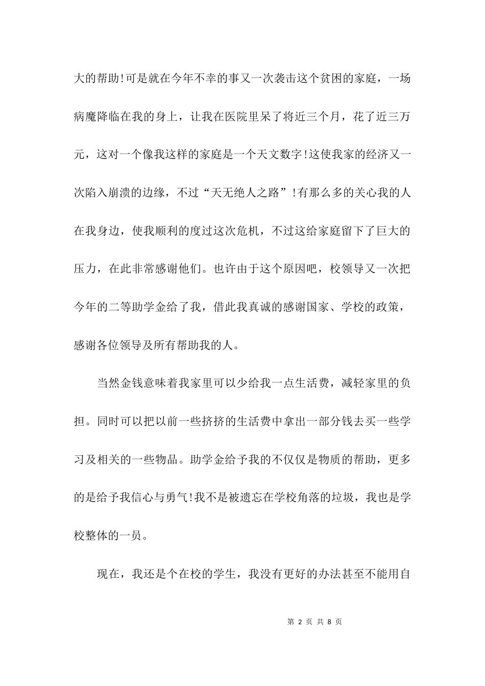 (精选)对于助学金的感谢信_第2页