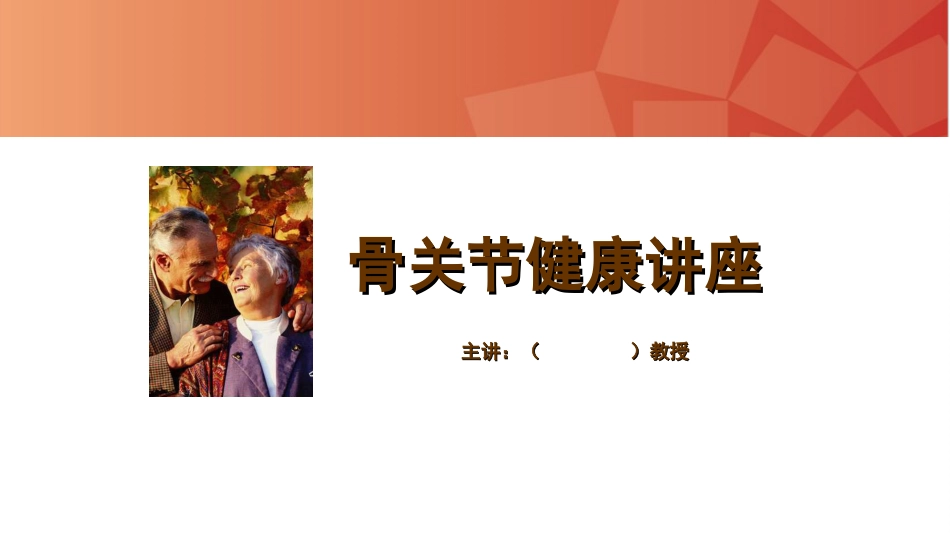 骨关节健康讲座骨关节健康讲座主讲:()教授主讲:()教授人类致残第一杀手不死的癌症人类致残第一杀手不死的癌症————骨关节病骨关节...