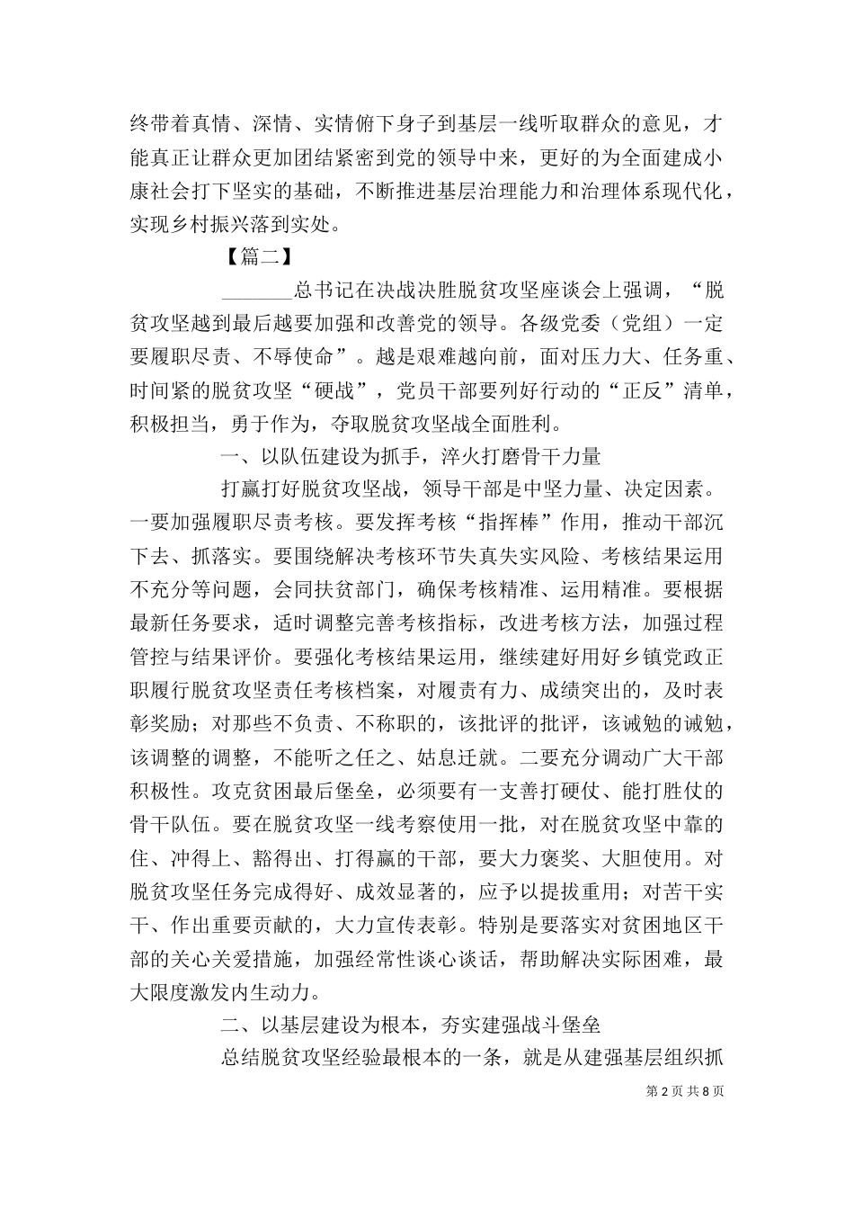 第1页共8页脱贫攻坚心得体会4篇【篇一】小康不小康,关键看老乡,地方强不强,还看领头羊。当前,脱贫攻坚已经到了最关键的时候,决胜全面...