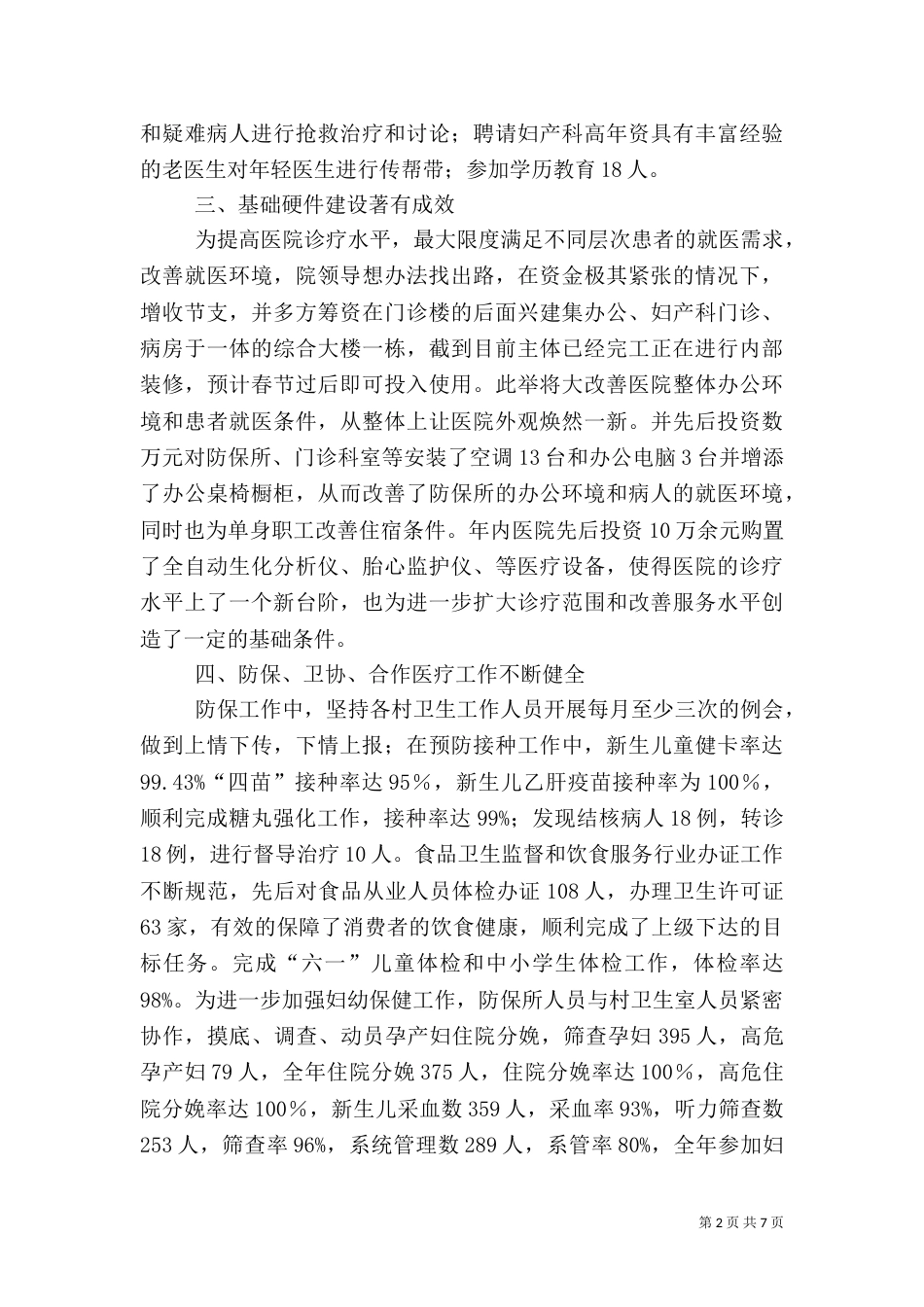 第1页共7页书山有路勤为径,学海无涯苦作舟。卫生院年终工作总结1卫生院年终工作总结二00七年乡卫生院在县卫生局、乡党委政府的领导和县直...