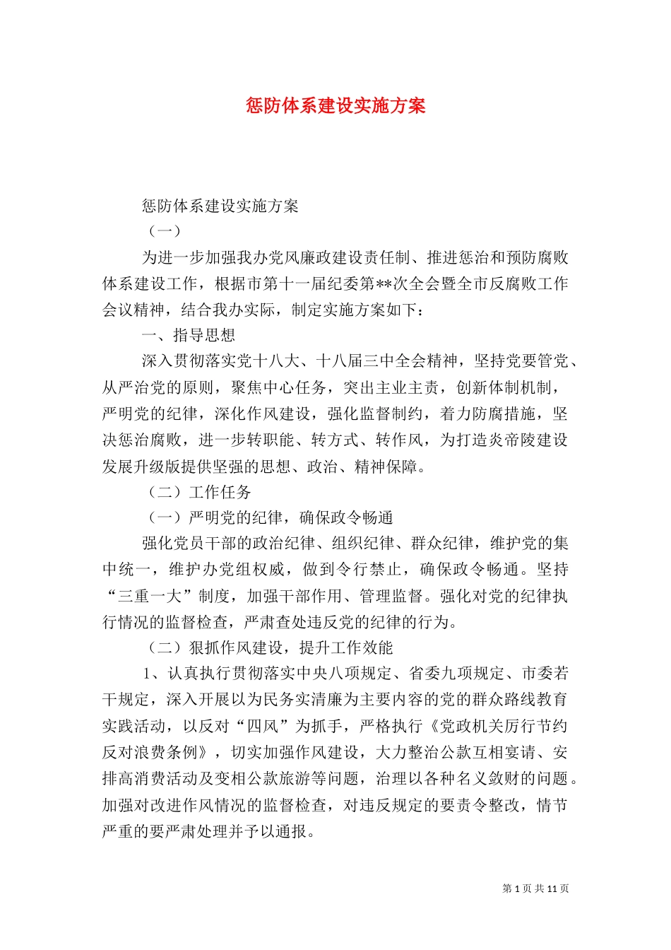 第1页共11页书山有路勤为径,学海无涯苦作舟。惩防体系建设实施方案惩防体系建设实施方案(一)为进一步加强我办党风廉政建设责任制、推进...