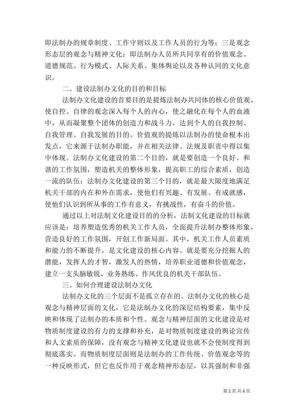 第1页共6页书山有路勤为径,学海无涯苦作舟。心中的法制办文化演讲材料文章标题:心中的法制办文化演讲材料尊敬的各位领导,同志们:大家下...