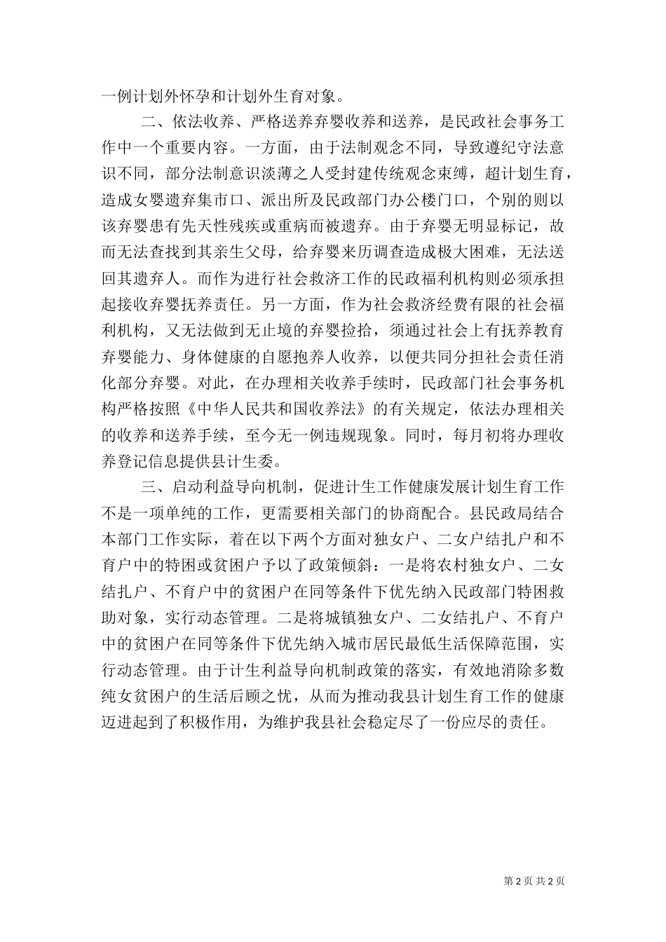 第1页共2页书山有路勤为径,学海无涯苦作舟。民政局计划生育职责落实情况报告根据市、县人口与计划生育领导小组有关文件精神,结合我局实际...