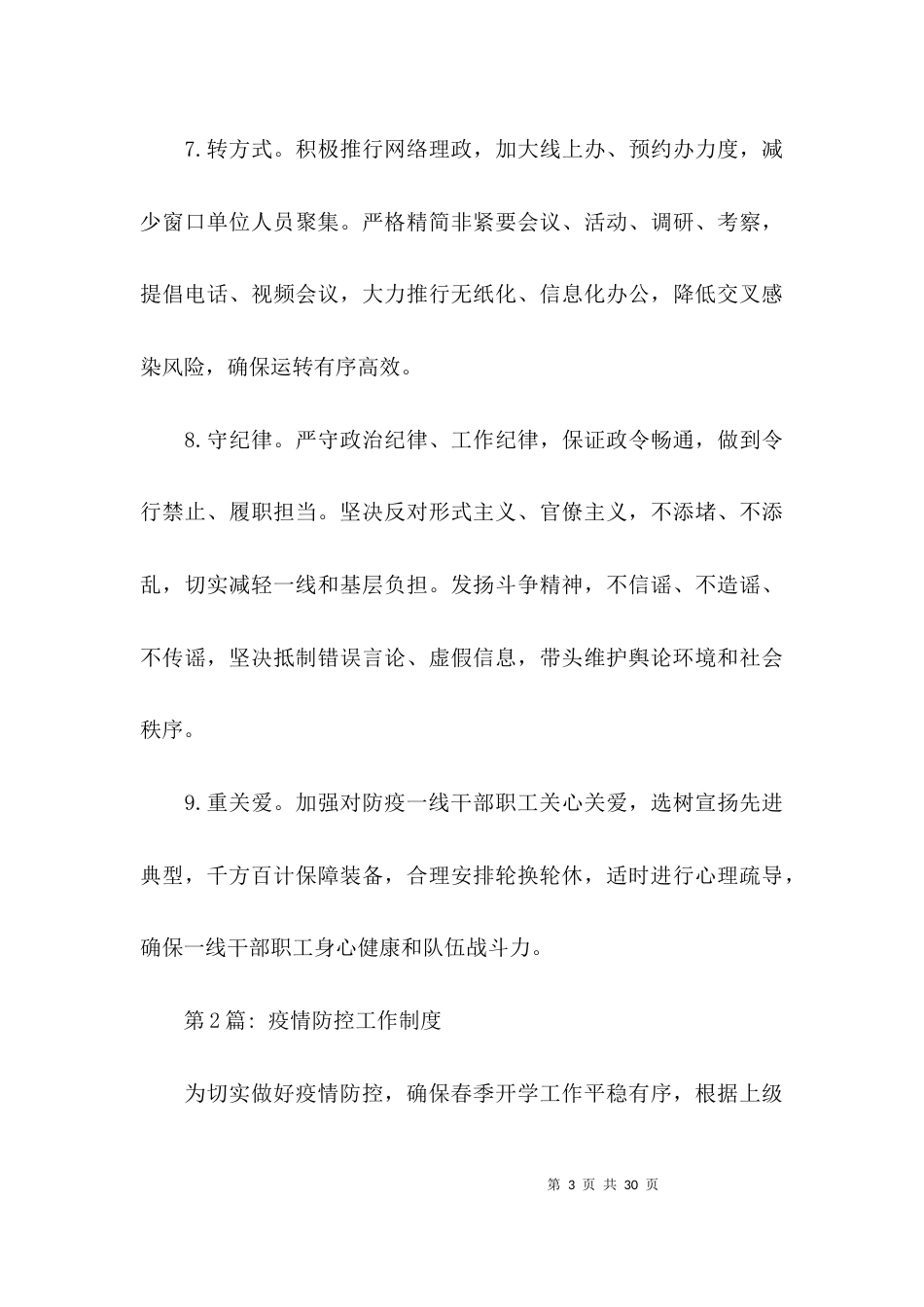 第1页共30页疫情防控工作制度(通用6篇)第1篇:疫情防控工作制度1.听指挥。坚持把疫情防控作为当前最重要的工作来抓,按照市委市政府统一部署...