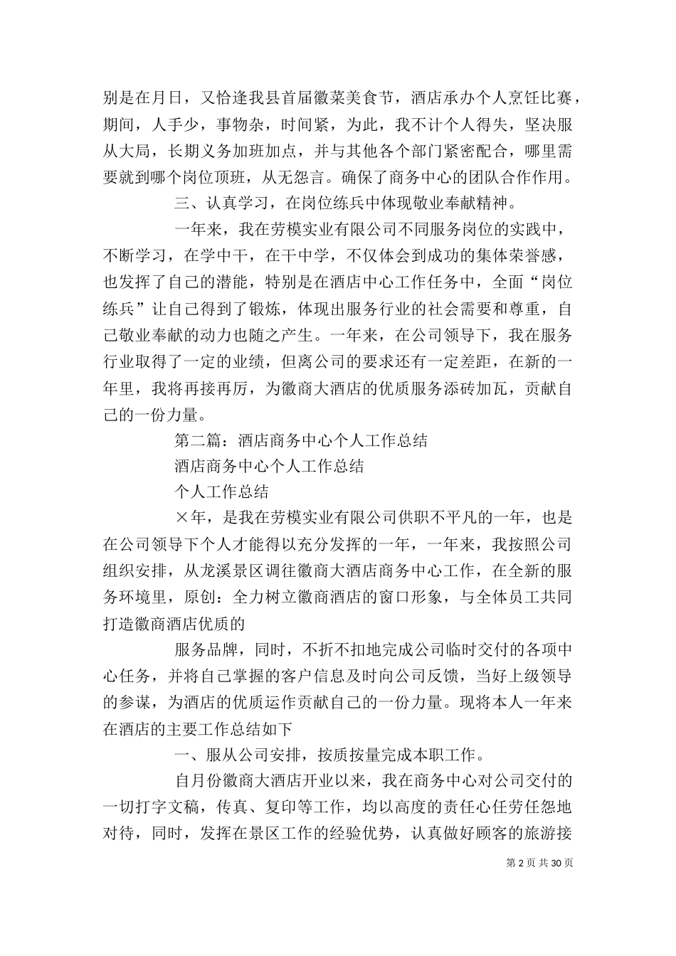 第1页共30页商务个人工作总结(精选多篇)个人工作总结第一篇:酒店商务中心个人工作总结酒店商务中心个人工作总结酒店商务中心个人工作总结...