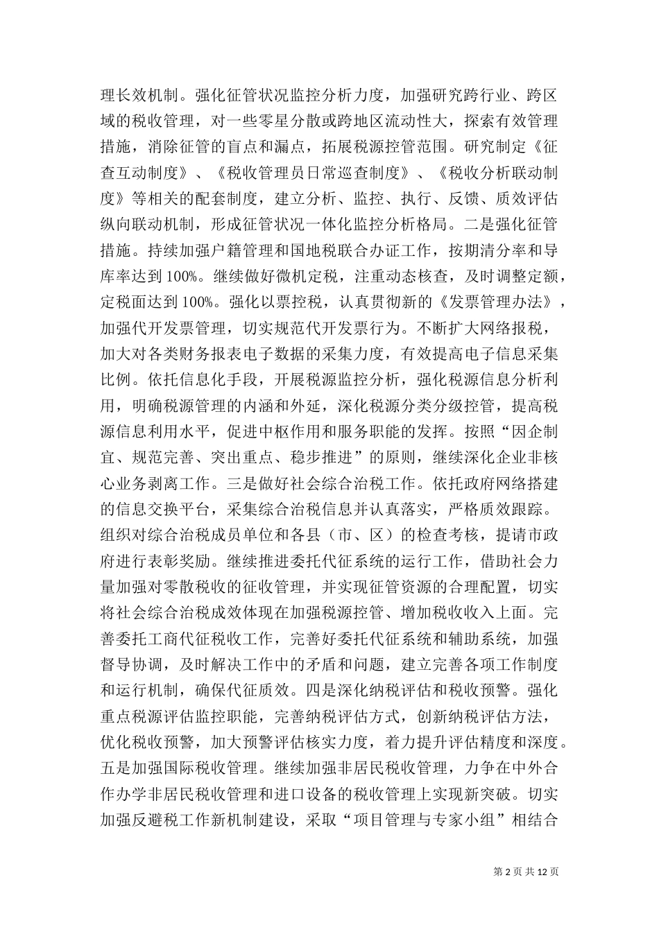 第1页共12页书山有路勤为径,学海无涯苦作舟。地税局质量管理工作要点一、突出收入质量这一核心,全面提升税收管理水平1、切实提高收入质量...