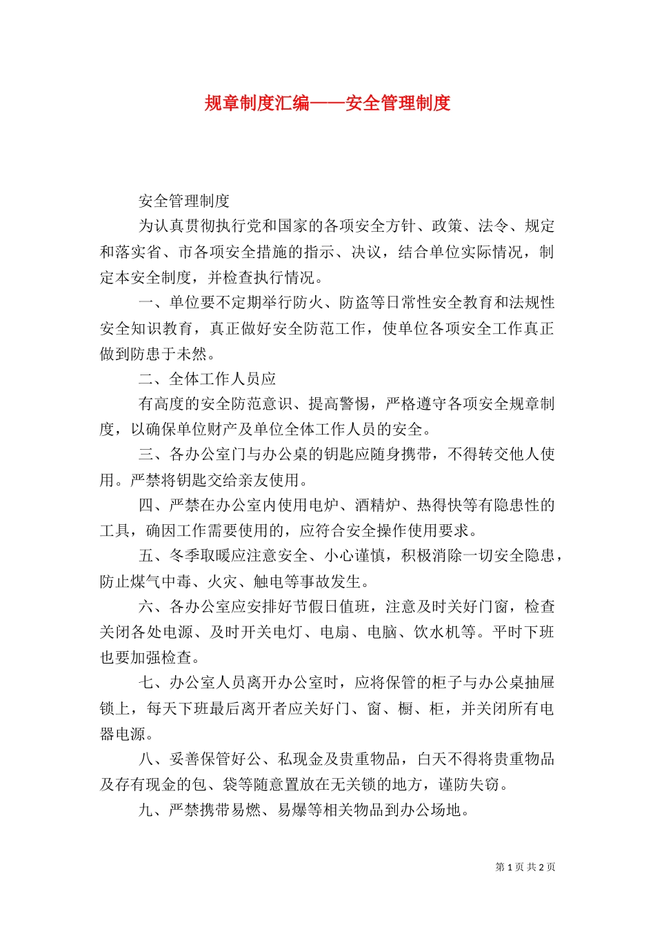 第1页共2页书山有路勤为径,学海无涯苦作舟。规章制度汇编——安全管理制度安全管理制度为认真贯彻执行党和国家的各项安全方针、政策、法令...