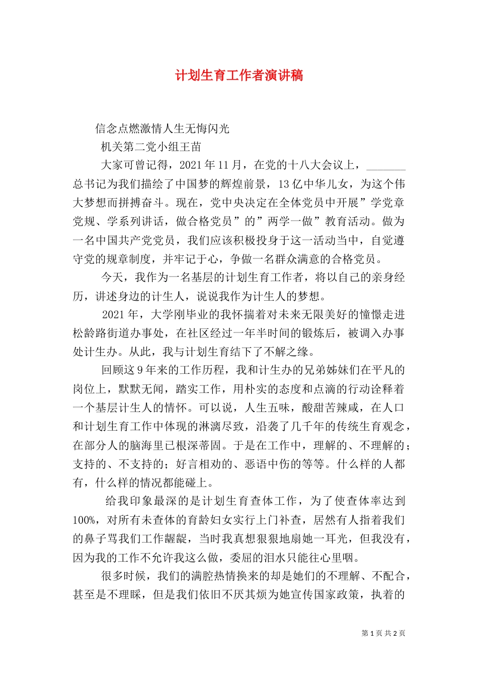 第1页共2页书山有路勤为径,学海无涯苦作舟。计划生育工作者演讲稿信念点燃激情人生无悔闪光机关第二党小组王苗大家可曾记得,2021年11月,...