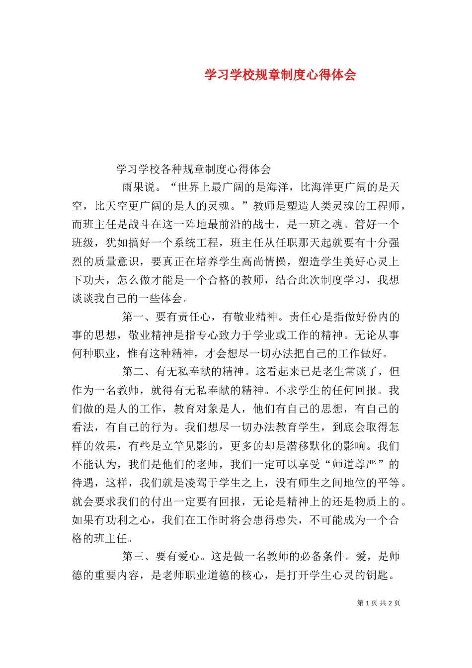 第1页共2页学习学校规章制度心得体会学习学校各种规章制度心得体会雨果说。“世界上最广阔的是海洋,比海洋更广阔的是天空,比天空更广阔的...