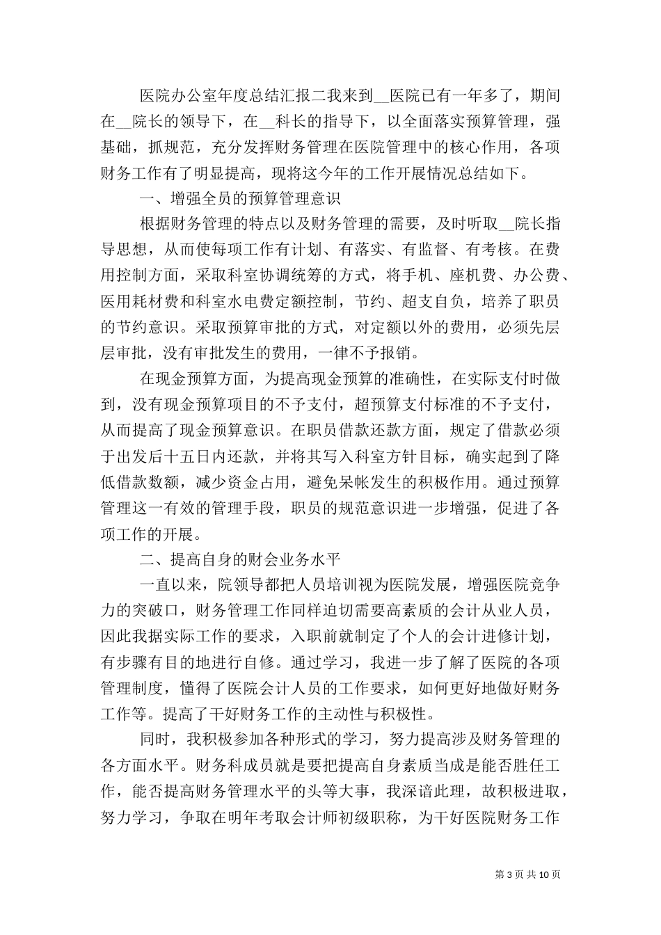 第1页共10页书山有路勤为径,学海无涯苦作舟。医院办公室年度总结汇报5篇医院办公室年度总结汇报一我从x月份起任卫生院院长,主要分管医院...