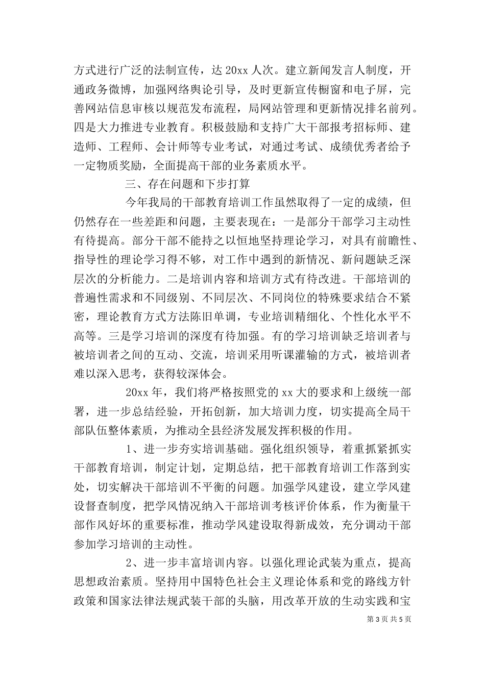 第1页共5页干部教育培训个人总结20xx年,我局干部教育培训工作在县委、政府的正确领导下,坚持以科学发展观为指导,深入贯彻《20xx-20xx年...