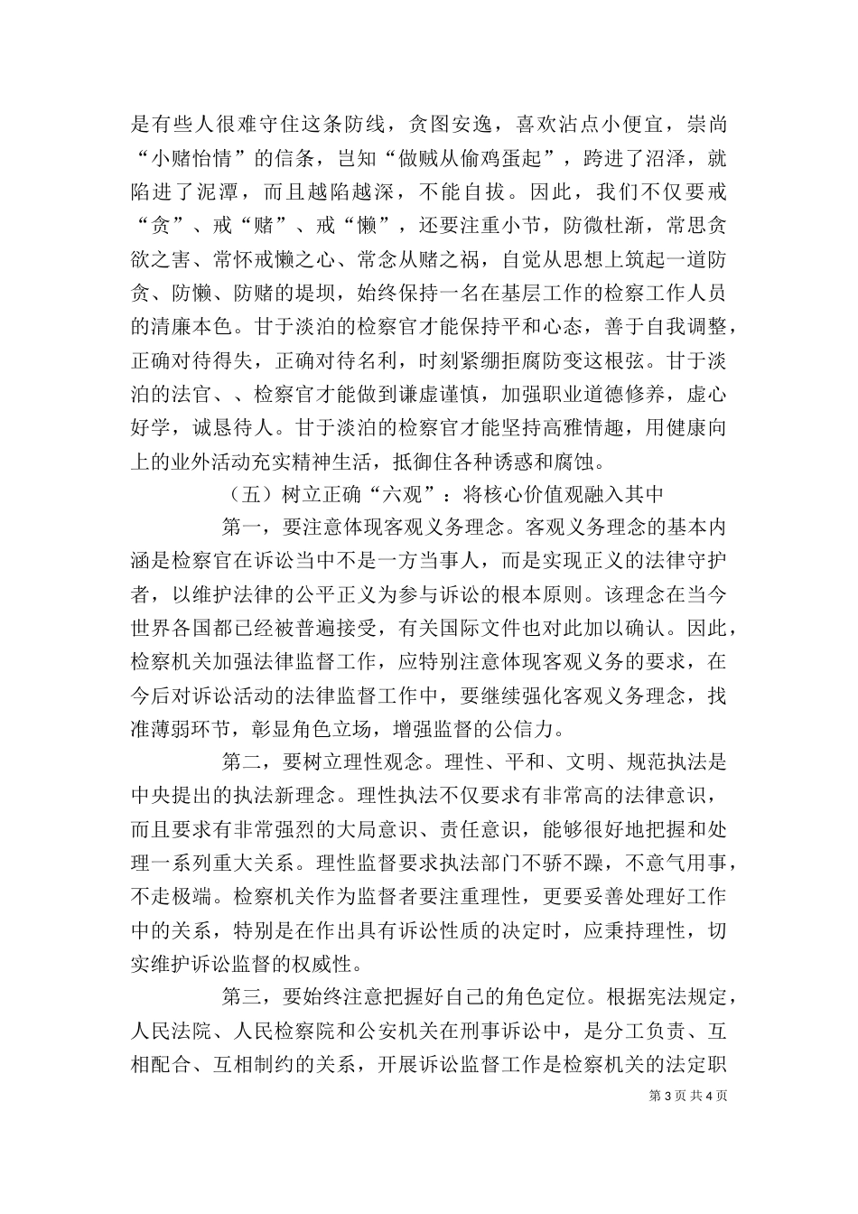 第1页共4页学习检察干警核心价值观心得体会政法干警核心价值观心得体会(一)当前,面对人民群众的司法需求日益增加、社会矛盾纠纷日益复杂...