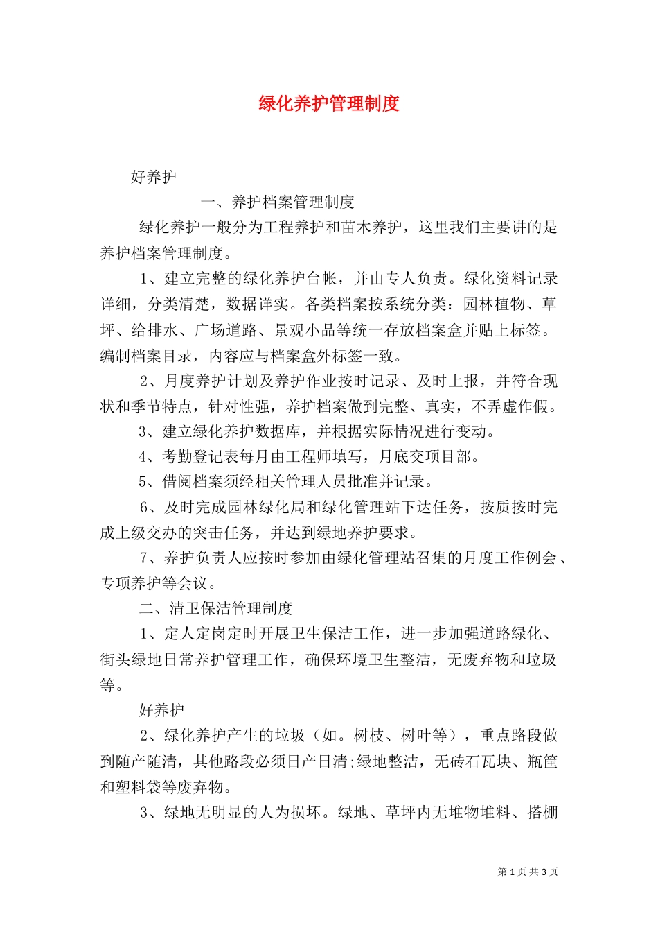 第1页共3页书山有路勤为径,学海无涯苦作舟。绿化养护管理制度好养护一、养护档案管理制度绿化养护一般分为工程养护和苗木养护,这里我们主...
