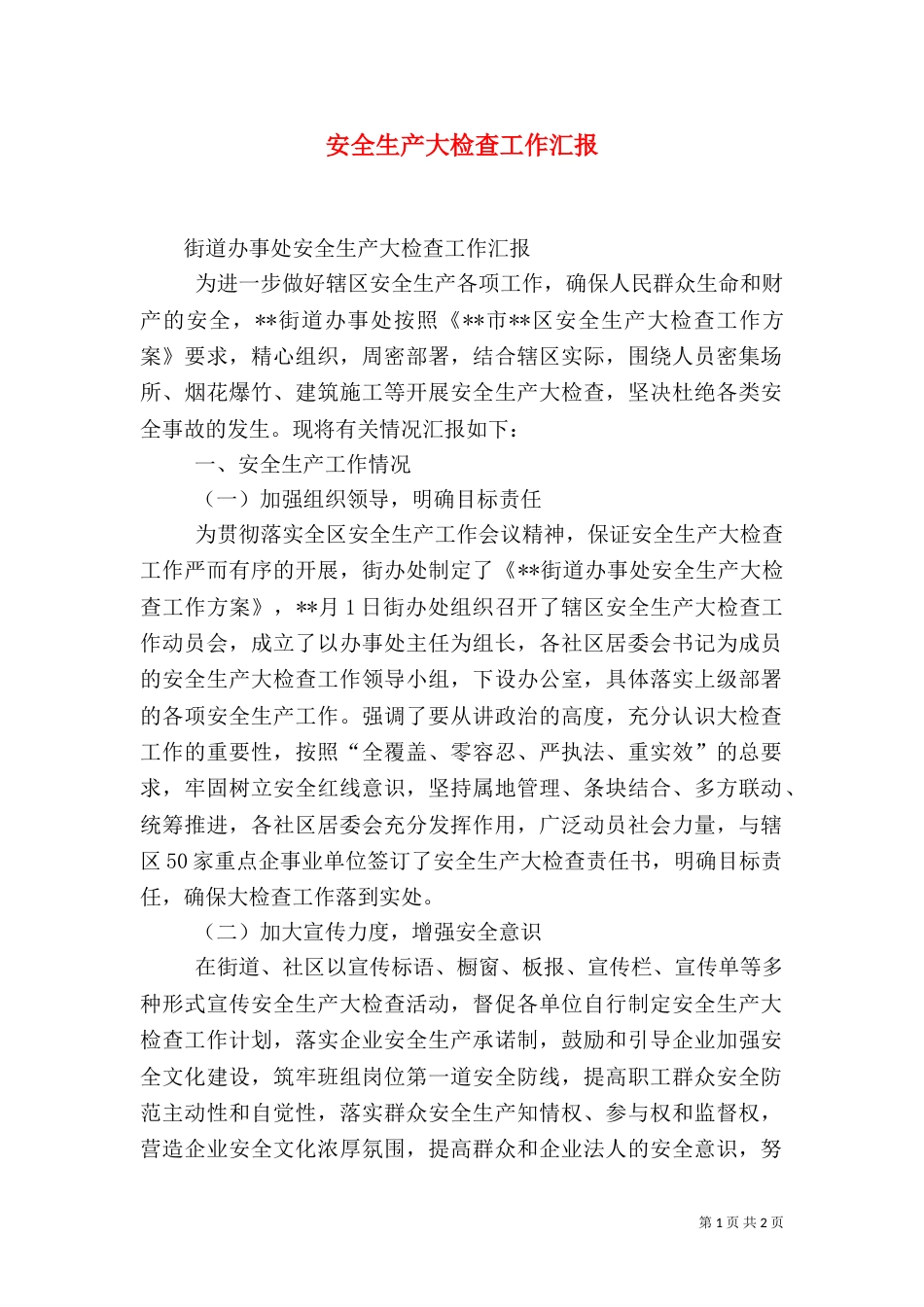 第1页共2页书山有路勤为径,学海无涯苦作舟。安全生产大检查工作汇报街道办事处安全生产大检查工作汇报为进一步做好辖区安全生产各项工作,...