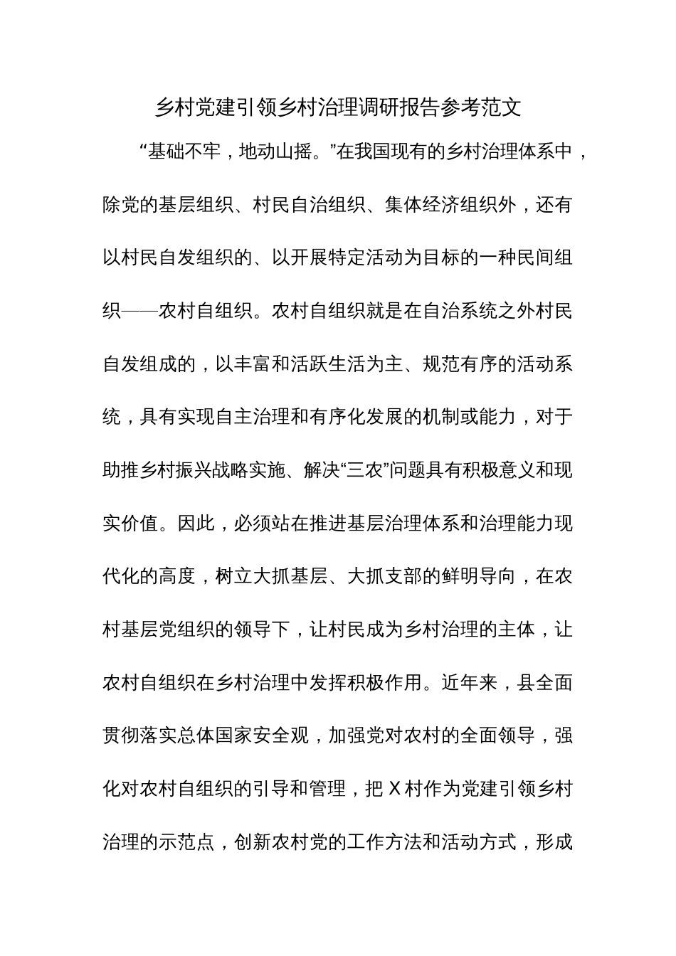 乡村党建引领乡村治理调研报告参考范文_第1页