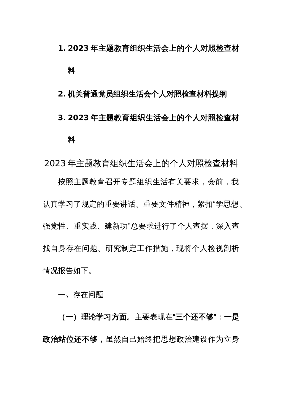 1.2023年主题教育组织生活会上的个人对照检查材料2.机关普通党员组织生活会个人对照检查材料提纲3.2023年主题教育组织生活会上的个人对照检...