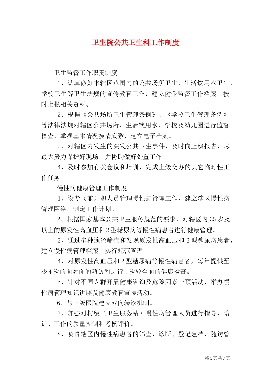 第1页共7页书山有路勤为径,学海无涯苦作舟。卫生院公共卫生科工作制度卫生监督工作职责制度1、认真做好本辖区范围内的公共场所卫生、生活...