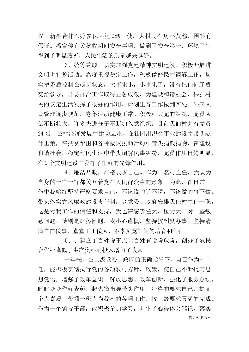 第1页共3页村主任述职尊敬的各位领导、亲爱的代表们:大家早上好。作为团山子村民委员会主任,我在乡党委政府和同德党总支、办事处的正确领...