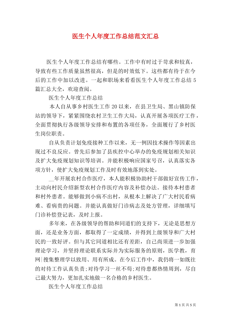 医生个人年度工作总结范文汇总_第1页