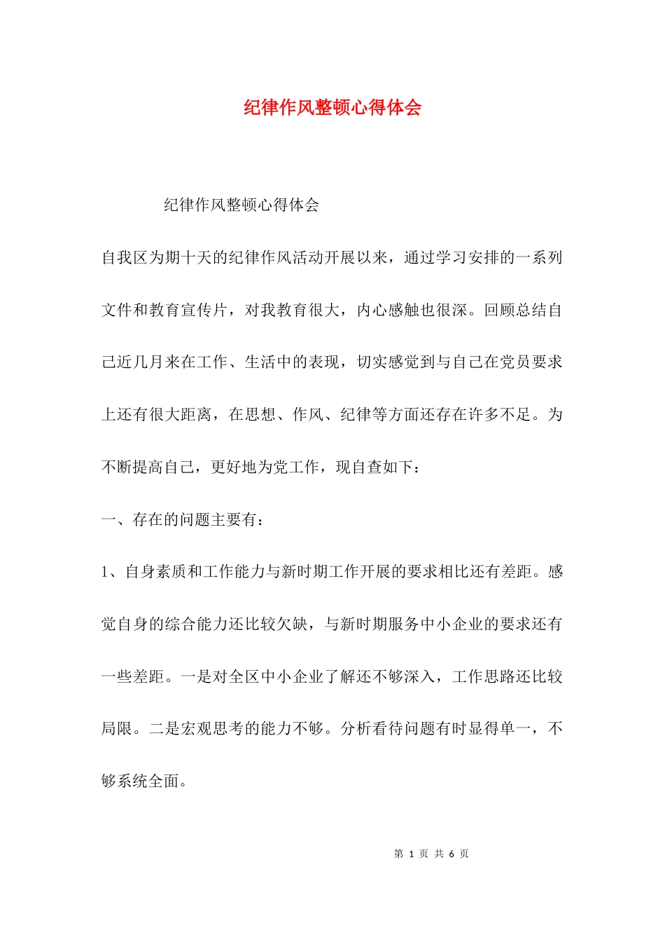 第1页共6页纪律作风整顿心得体会纪律作风整顿心得体会自我区为期十天的纪律作风活动开展以来,通过学习安排的一系列文件和教育宣传片,对我...