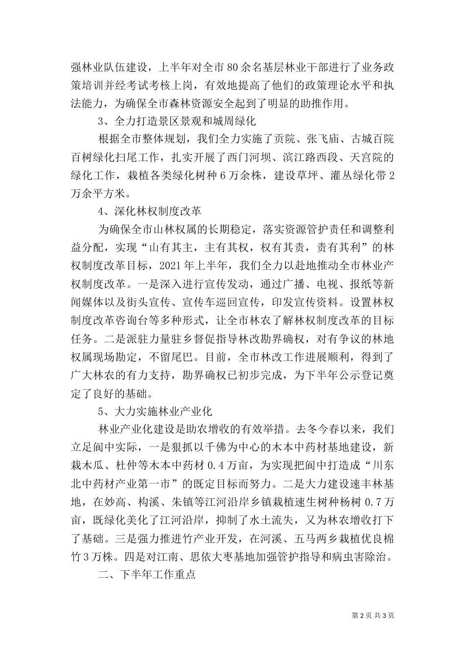 第1页共3页书山有路勤为径,学海无涯苦作舟。林业局上半年三农工作总结2021年,我局在市委、市府的坚强领导下,在全市广大干部群众的大力支...