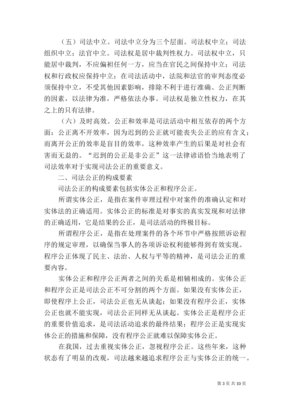 第1页共10页诠释影响司法公正的因素实现途径论文提要。司法公正是依法治国的重要环节,是法律正义与道德正义在社会现实生活中的实现,是审...