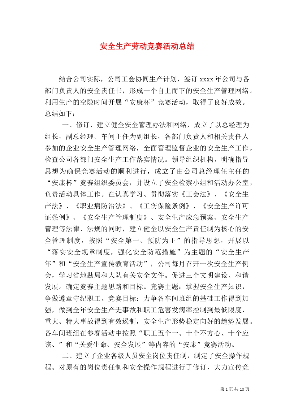 第1页共10页书山有路勤为径,学海无涯苦作舟。安全生产劳动竞赛活动总结结合公司实际,公司工会协同生产计划,签订xxxx年公司与各部门负责...