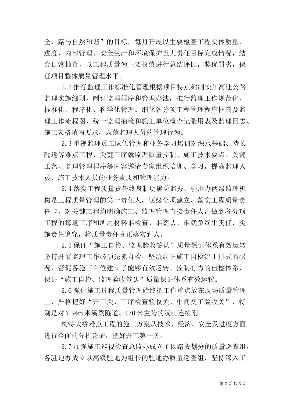 第1页共3页书山有路勤为径,学海无涯苦作舟。工程质量管理心得工程质量管理论文:浅淡高速公路工程质量管理摘要。结合陕西安川高速公路监理...