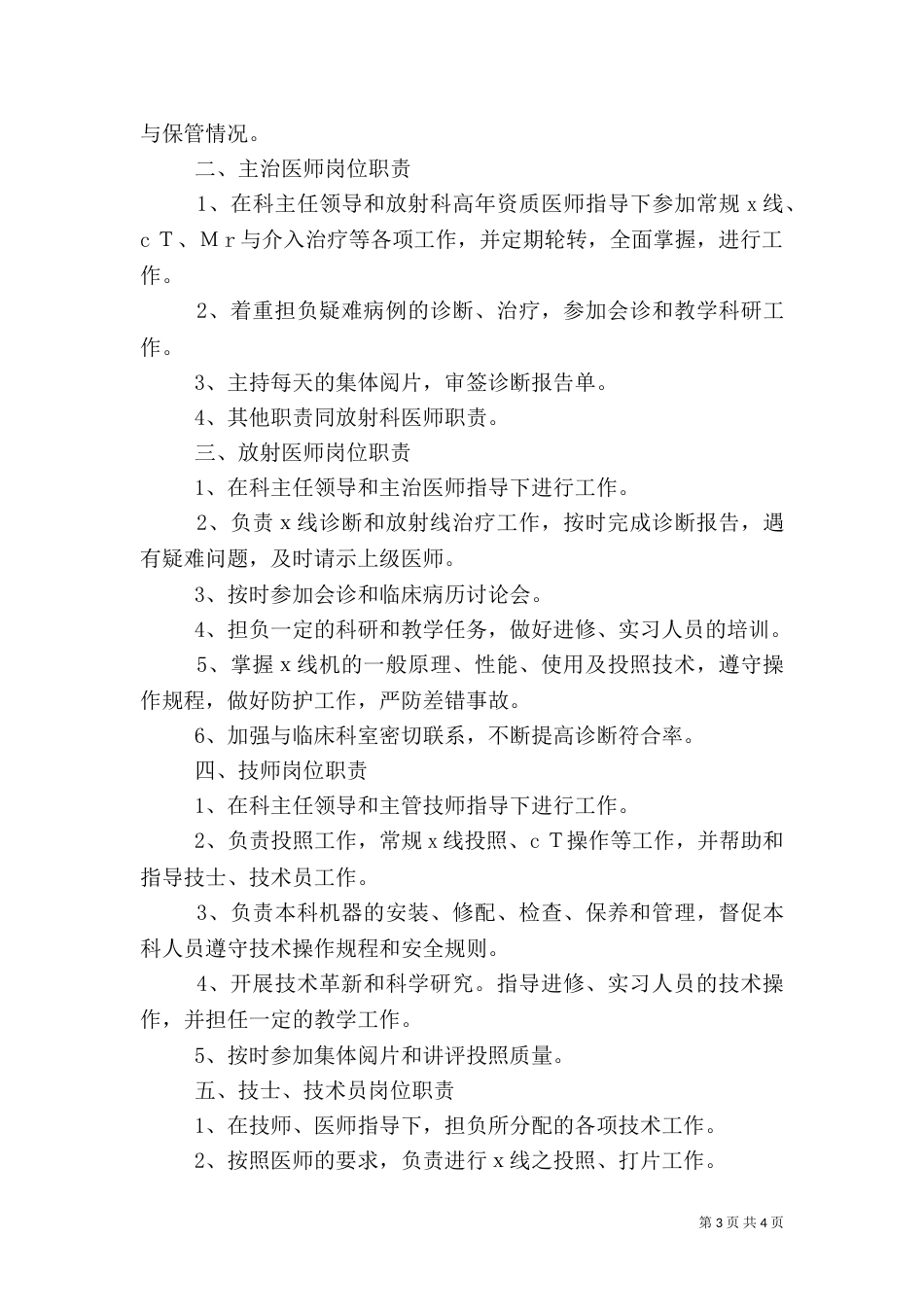 第1页共4页书山有路勤为径,学海无涯苦作舟。工地试验室规章制度(制作上墙)来宾市兴宾区人民医院放射科各级人员职责一、x线摄影室岗位职责1...