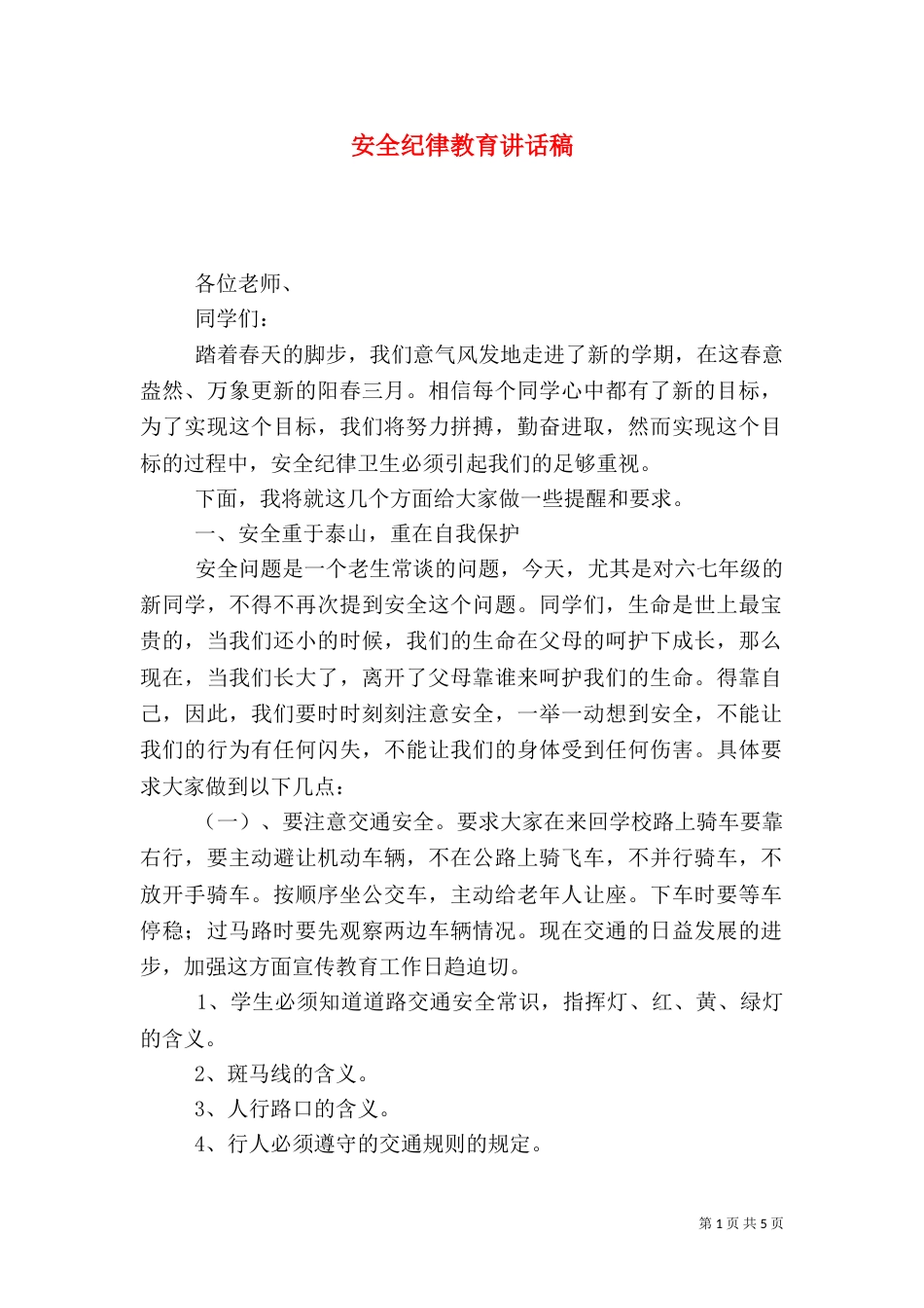 第1页共5页书山有路勤为径,学海无涯苦作舟。安全纪律教育讲话稿各位老师、同学们:踏着春天的脚步,我们意气风发地走进了新的学期,在这春...