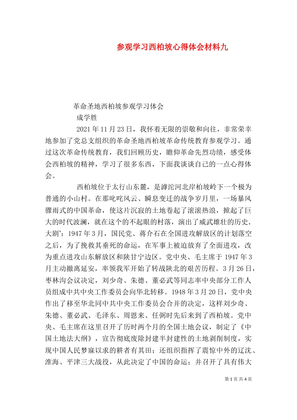 第1页共4页参观学习西柏坡心得体会材料九革命圣地西柏坡参观学习体会成学胜2021年11月23日,我怀着无限的崇敬和向往,非常荣幸地参加了党总...