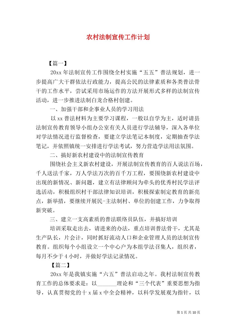 第1页共10页书山有路勤为径,学海无涯苦作舟。农村法制宣传工作计划【篇一】20xx年法制宣传工作围绕全村实施“五五”普法规划,进一步提高...