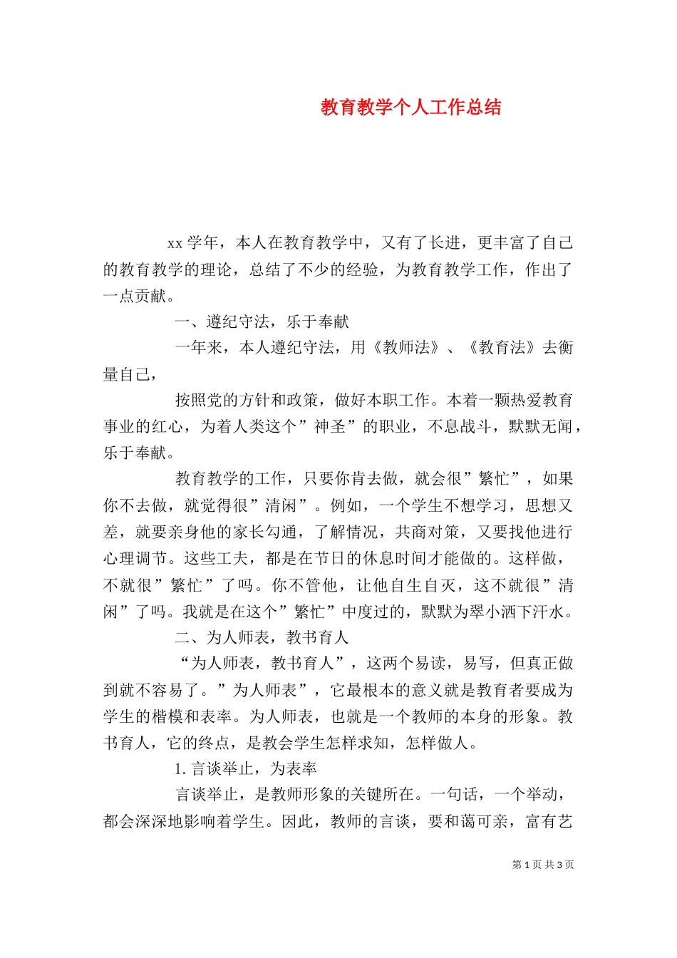 第1页共3页教育教学个人工作总结xx学年,本人在教育教学中,又有了长进,更丰富了自己的教育教学的理论,总结了不少的经验,为教育教学工作...