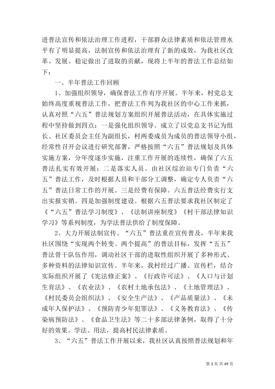 第1页共49页普法工作总结优选15篇【导语】普法工作总结优选15篇由会员“347833365”整理投稿精心推荐,小编希望对你的学习工作能带来参考借...