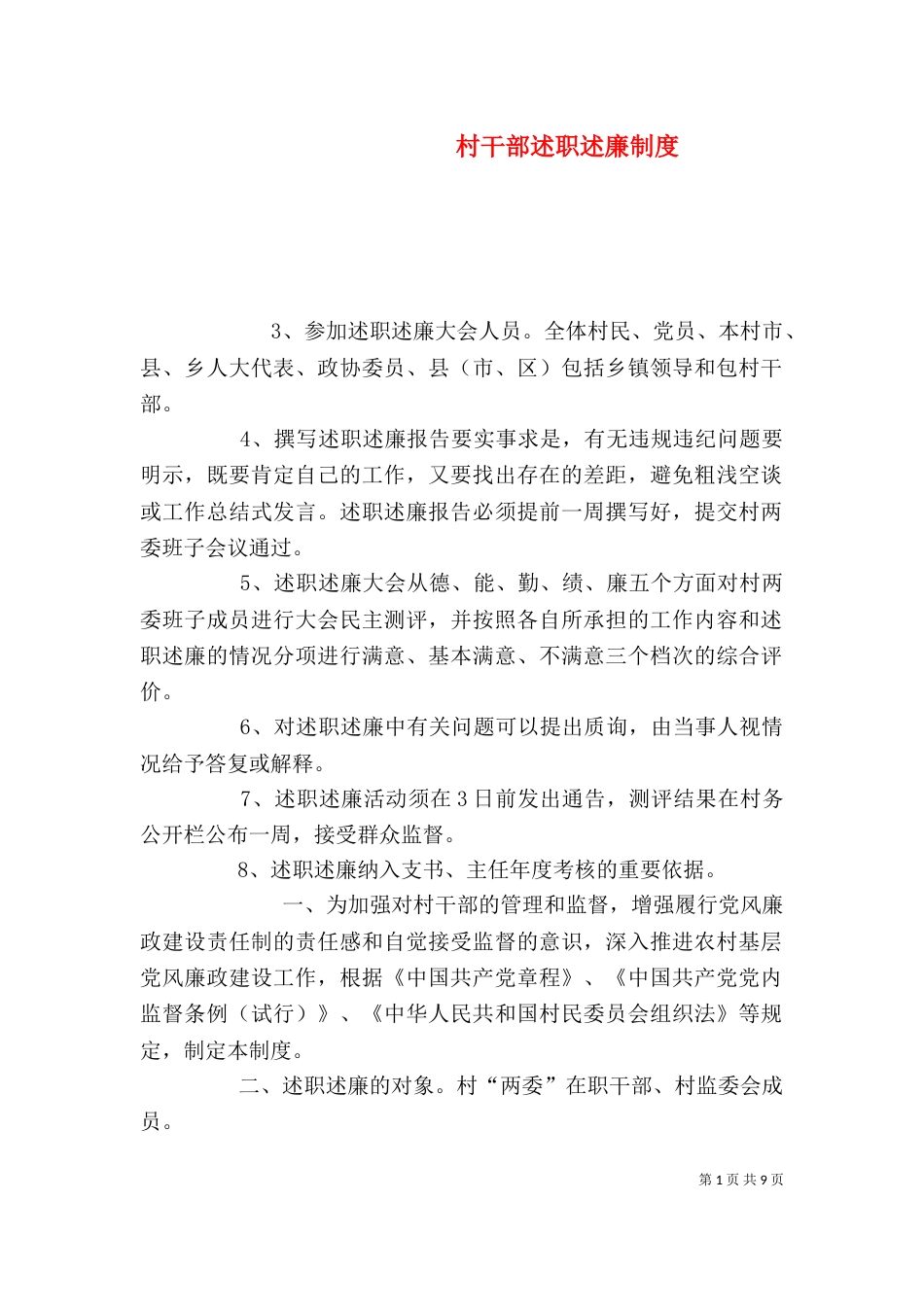 第1页共9页村干部述职述廉制度3、参加述职述廉大会人员。全体村民、党员、本村市、县、乡人大代表、政协委员、县(市、区)包括乡镇领导和...