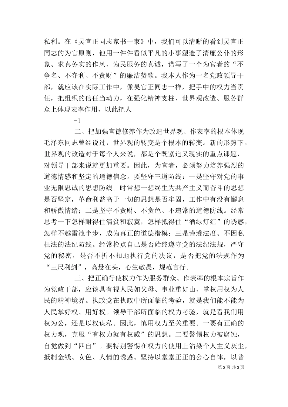 第1页共3页清正廉洁心得体会学习《李源潮同志在中国浦东、井冈山、延安干部学院2021年秋季开学典礼上的讲话》、《吴官正同志家书一束》及《...