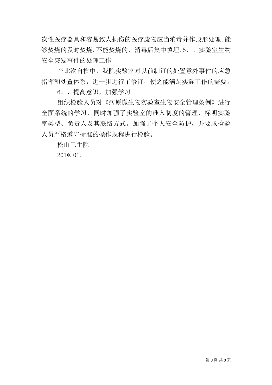 第1页共3页书山有路勤为径,学海无涯苦作舟。实验室安全卫生自查报告自查报告在实验设备管理中心和政治与公共管理学院的领导下,为更好地为...