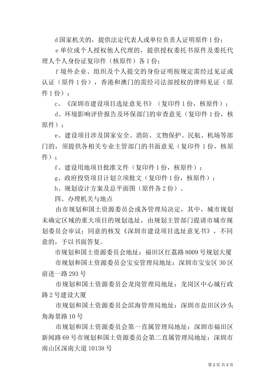 第1页共3页规划许可证申请资料办理用地规划许可一、办理条件a、符合城市规划;b、取得《深圳市建设项目选址意见书》(有效期内);c、政府...