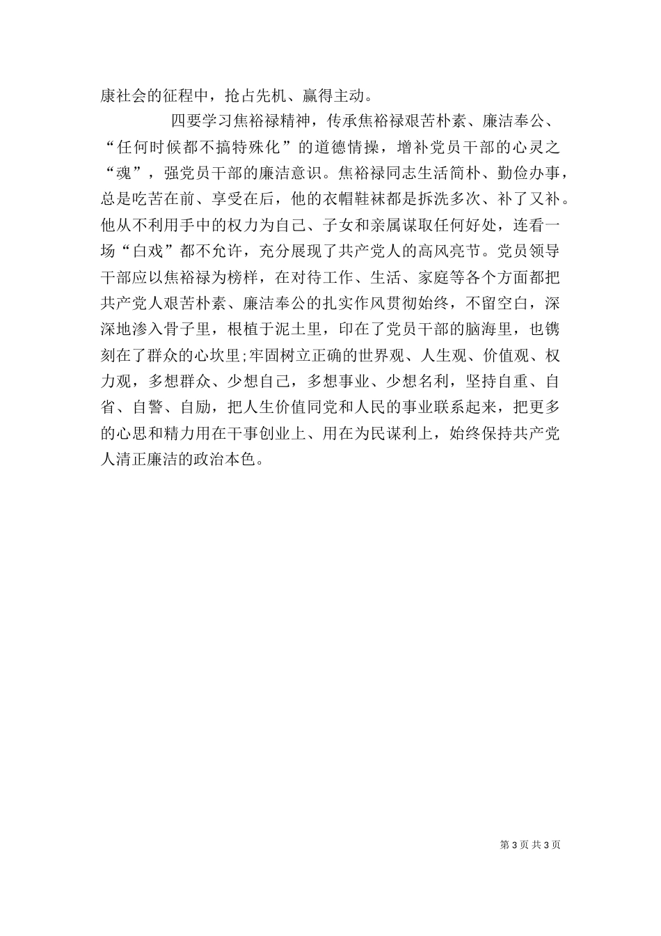 第1页共3页焦裕禄心得体会学习焦裕禄精神心得体会总书记的要求,直截了当。“学习弘扬焦裕禄精神,要重点学习弘扬焦裕禄的公仆情怀、求实作...