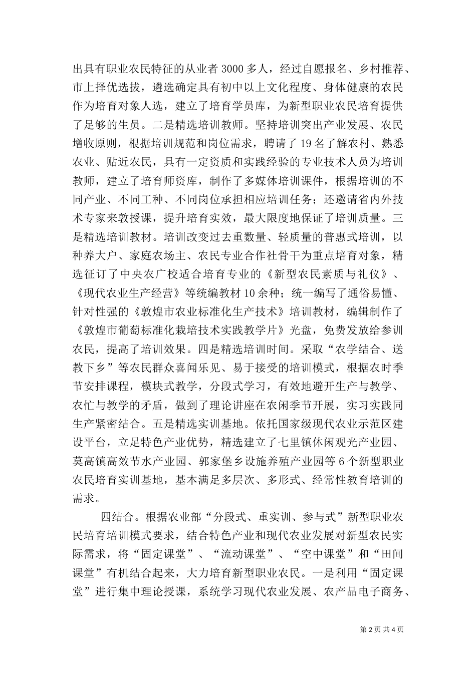 第1页共4页书山有路勤为径,学海无涯苦作舟。新型职业农民3543培育模式敦煌市新型职业农民培育形成“3543”培育模式为了使新型职业农民培育...
