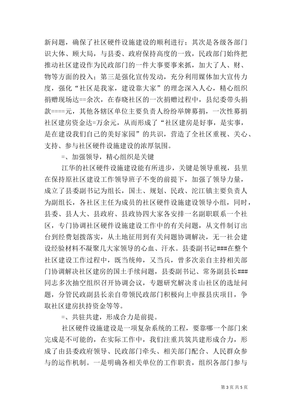 第1页共5页书山有路勤为径,学海无涯苦作舟。社会建设经验材料求实创新共筑共建打造优质社区服务平台(====年=月==日)##县城市社区硬件设...