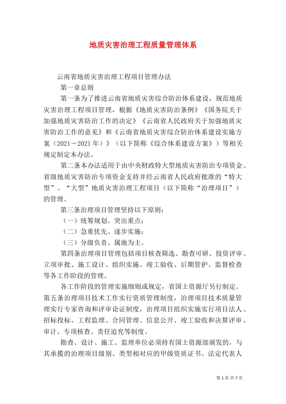 第1页共7页书山有路勤为径,学海无涯苦作舟。地质灾害治理工程质量管理体系云南省地质灾害治理工程项目管理办法第一章总则第一条为了推进云...