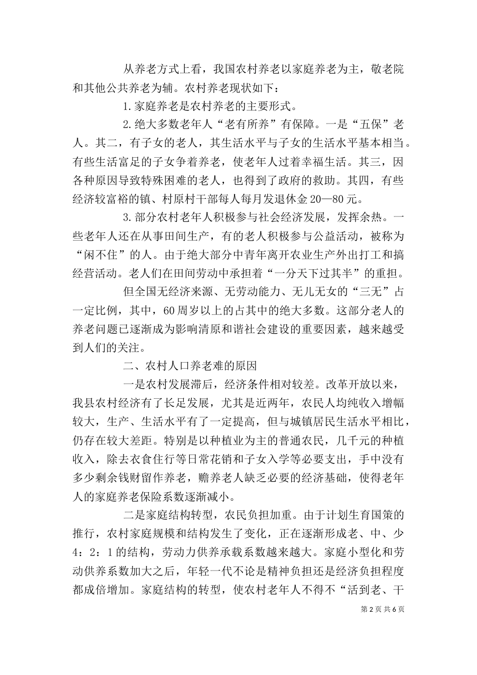 第1页共6页农村养老保障制度的实践调研感想关于农村养老保障情况的调研报告随着我国逐步迈入人口老龄化时代,人口老龄化问题也突出的摆在我...